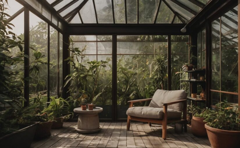 Wir träumen von einem Gewächshaus-Pavillon, mit einem Sessel drin. Da könnte man von Pflanzen umgeben sein Buch lesen. Hach …